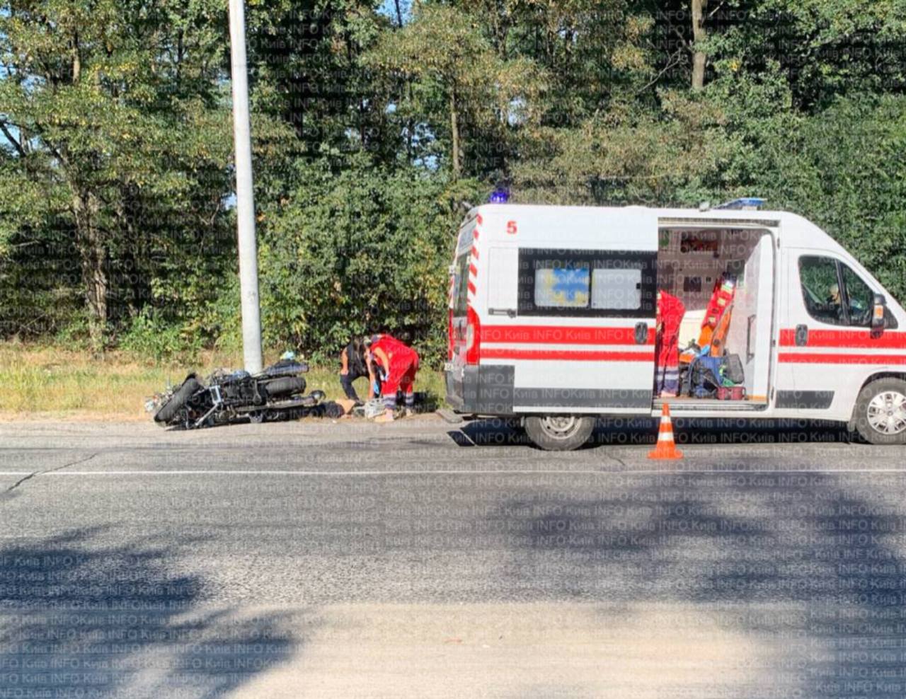 Водитель мотоцикла выехал на встречную полосу в повороте, где столкнулся с автобусом.
