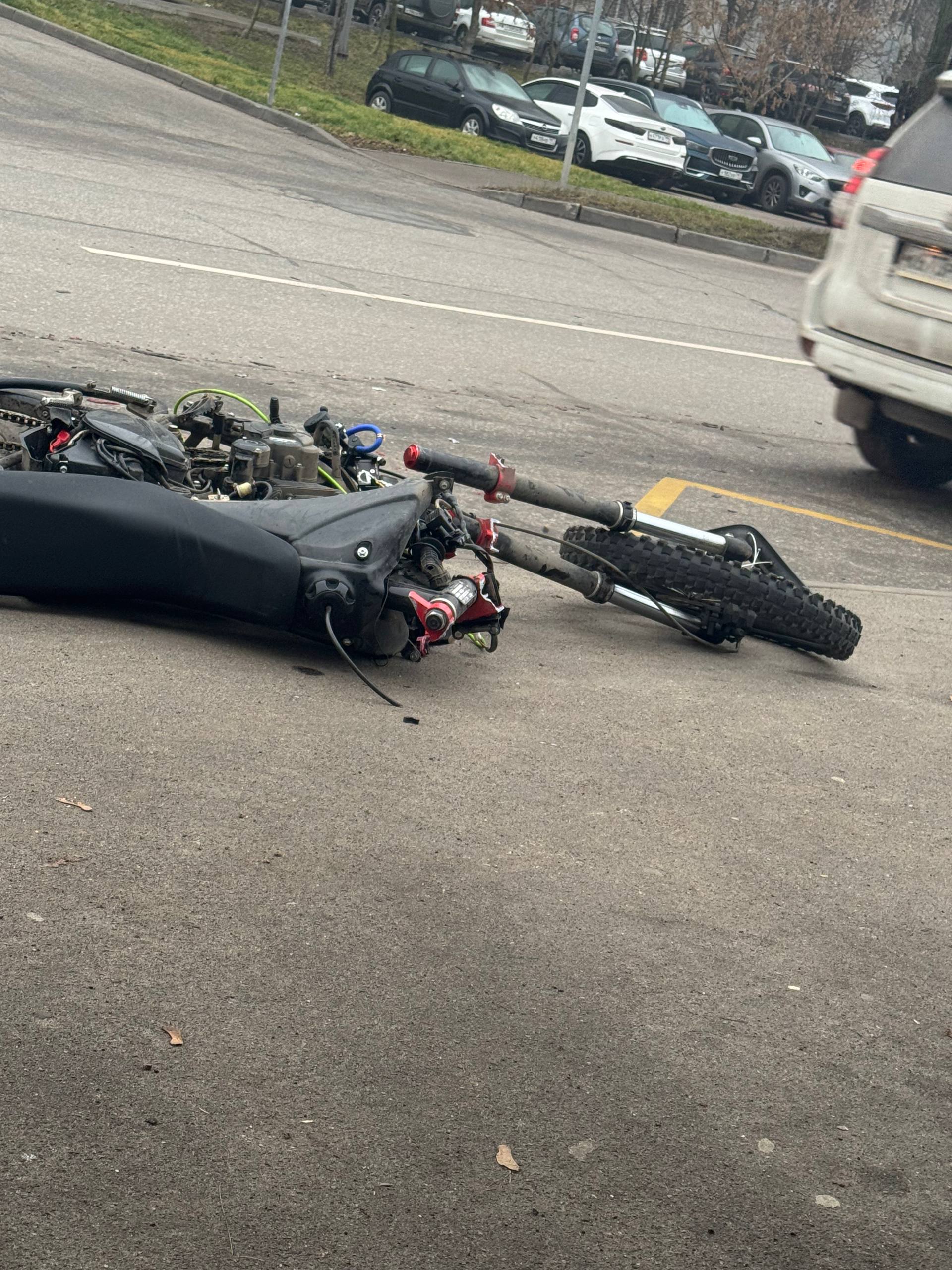 Проехал лежачий полицейский, внезапно залип трос газа, мотоцикл встал на дыбы и влетел в машину.