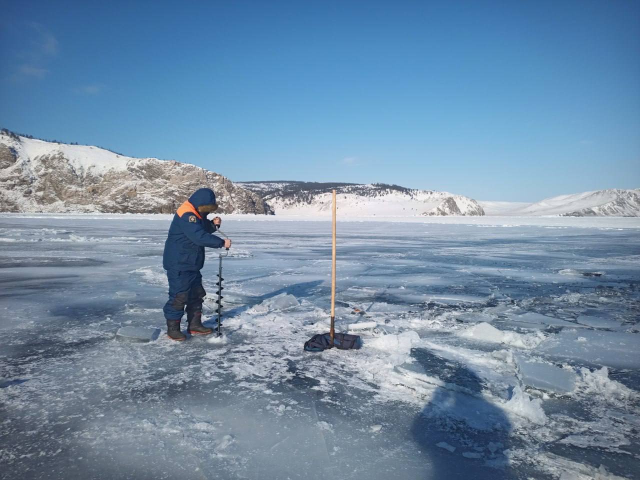 Фото 1. Спасатели нашли место провала автомобиля с двумя рыбаками из села Еланцы, которые пропали 26 января.