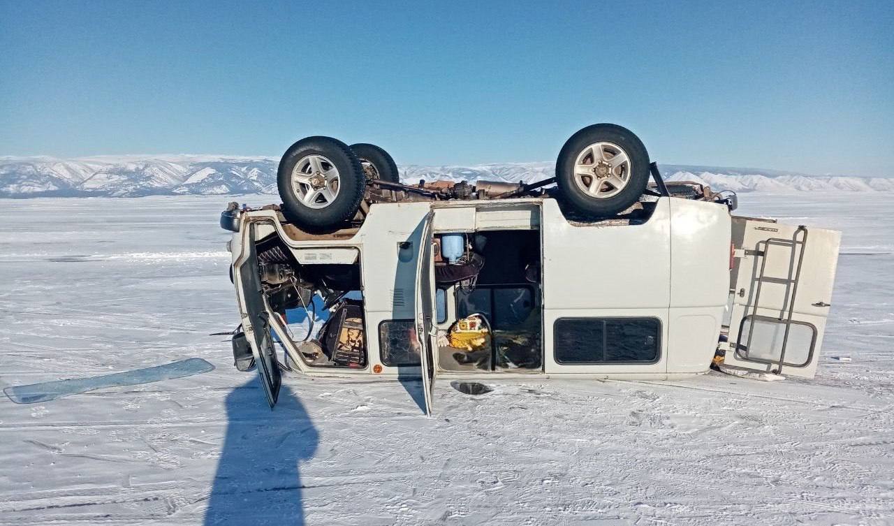 Фото 2 и 3. Сегодня около деревни Малый Хужир опрокинулся УАЗ, катавший туристов из Китая. На месте погибла 75-летняя гражданка Поднебесной, еще трем туристам потребовалась помощь (у них ушибы, травмы позвоночника и головы).